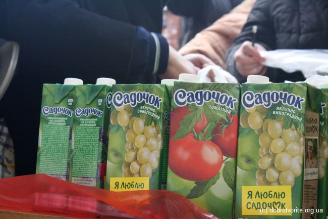 И у бедных бывает пир! Благодаря спонсорам программы пища жизни, малоимущие люди в Киеве и по всей Украине могут получать соки и угощения. Сегодняшняя акция почти полностью смогла состоятся, благодаря посетителям "Экобуфета". Спасибо им огромное!!!