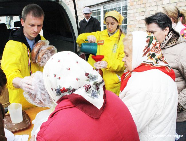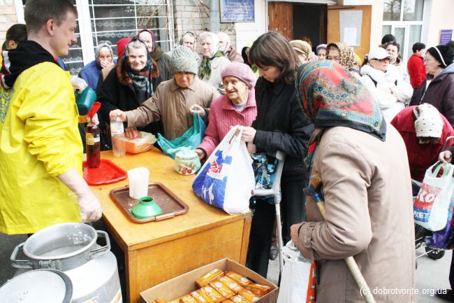 Сегодня прошла интересная благотворительная акция. Благотворительная организация «Пища Жизни» совместно с компанией "МегаМаркет" и представителем Православной церкви г. Киева поздравляли киевлян с предстоящими праздниками. 230 малоимущих пожилых людей, приняли вкусные подарки от спонсоров. Не остались без внимания и 20 человек из дома престарелых.