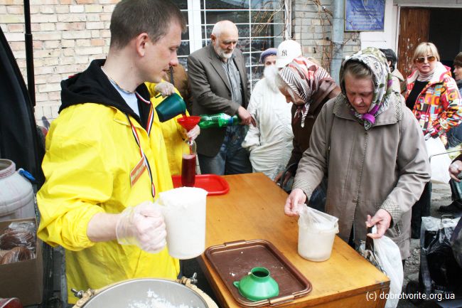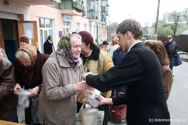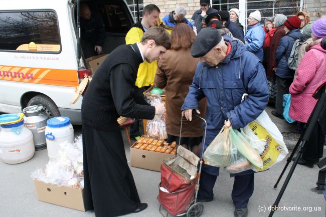 Пасхальная акция Благотворительной организации «Пища Жизни» совместно с компанией МегаМаркет и представителем православной церкви г.Киева — поздравили 250 малоимущих людей с предстоящими праздниками.