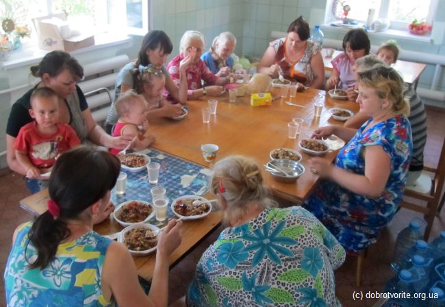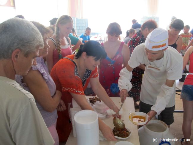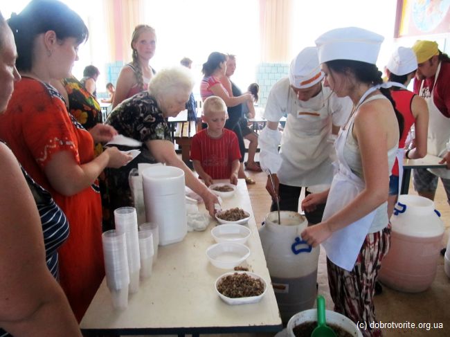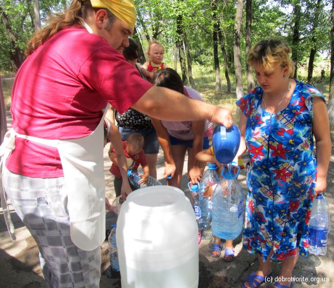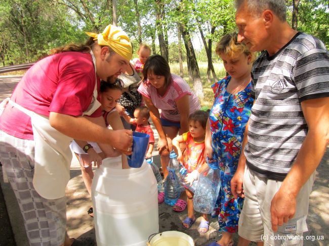 Для волонтёров Благотворительной организации «Пища Жизни» из Павлограда день в субботу, 2 августа начался в 4 утра. Именно в это время они начали готовить обеды для беженцев с востока Украины. При поддержке Киевского Благотворительной организации «Пища Жизни», волонтёры смогли раздать 250 порций обедов голодным людям в Красноармейске, Димитрове (Донецкая обл.), а также Павлограде. Беженцы живут в палаточных городках, на базе поликлиник и интернатов. Людям не хватает элементарного — питьевой воды. На своей небольшой машине, волонтёры смогли привезти, кроме обедов, 100 литров родниковой воды.