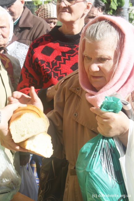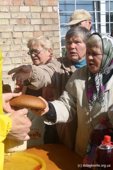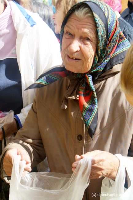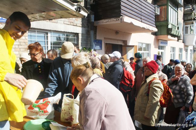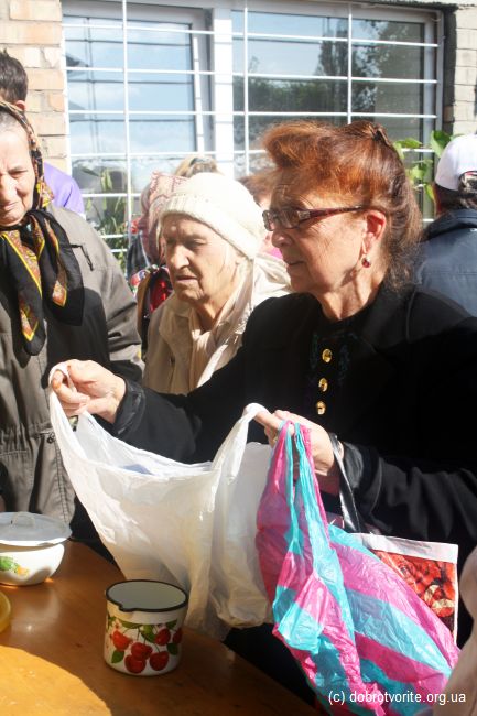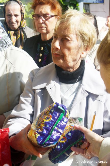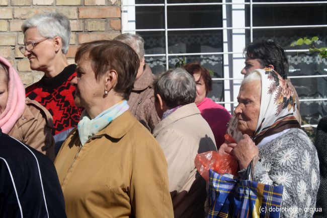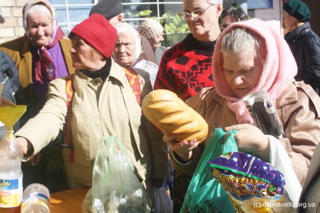 Благотворительная акция Благотворительной организации «Пища Жизни» в День пожилых людей 2014. Помощь 260 беженцам с востока Украины, ветеранам, инвалидам и пенсионерам.